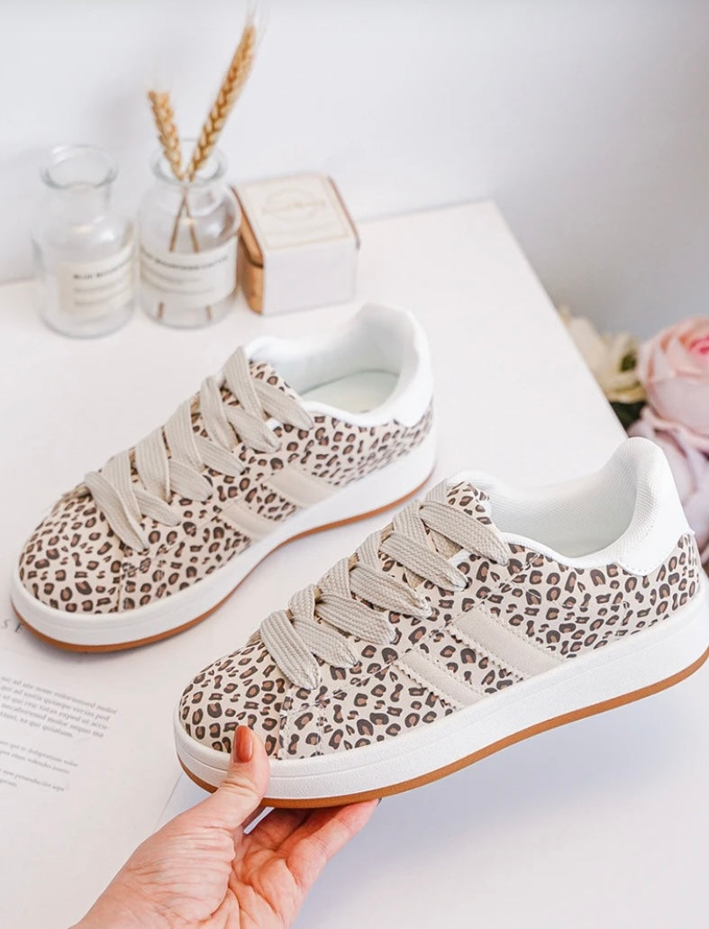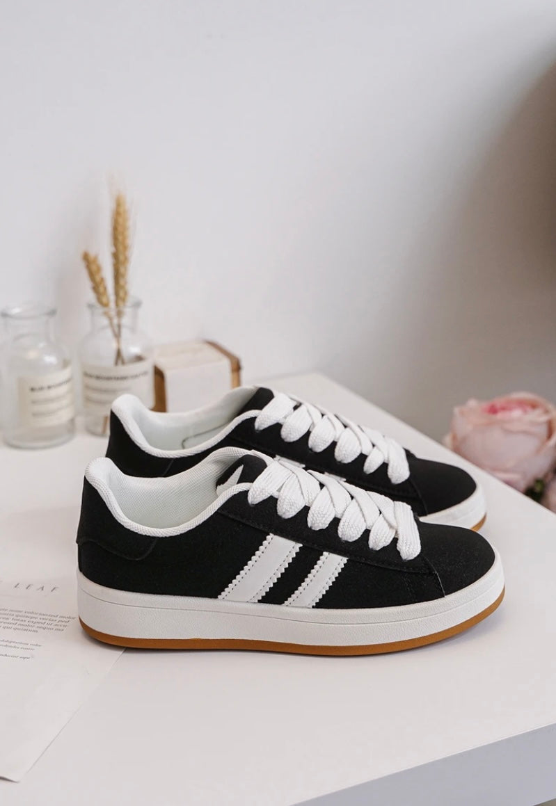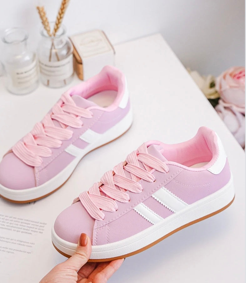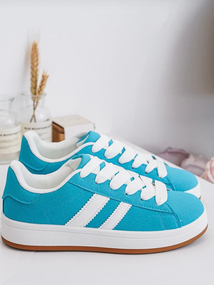 Basket au goût du jour, en simili cuir sur l’extérieur et intérieur en tissu, taille correctement