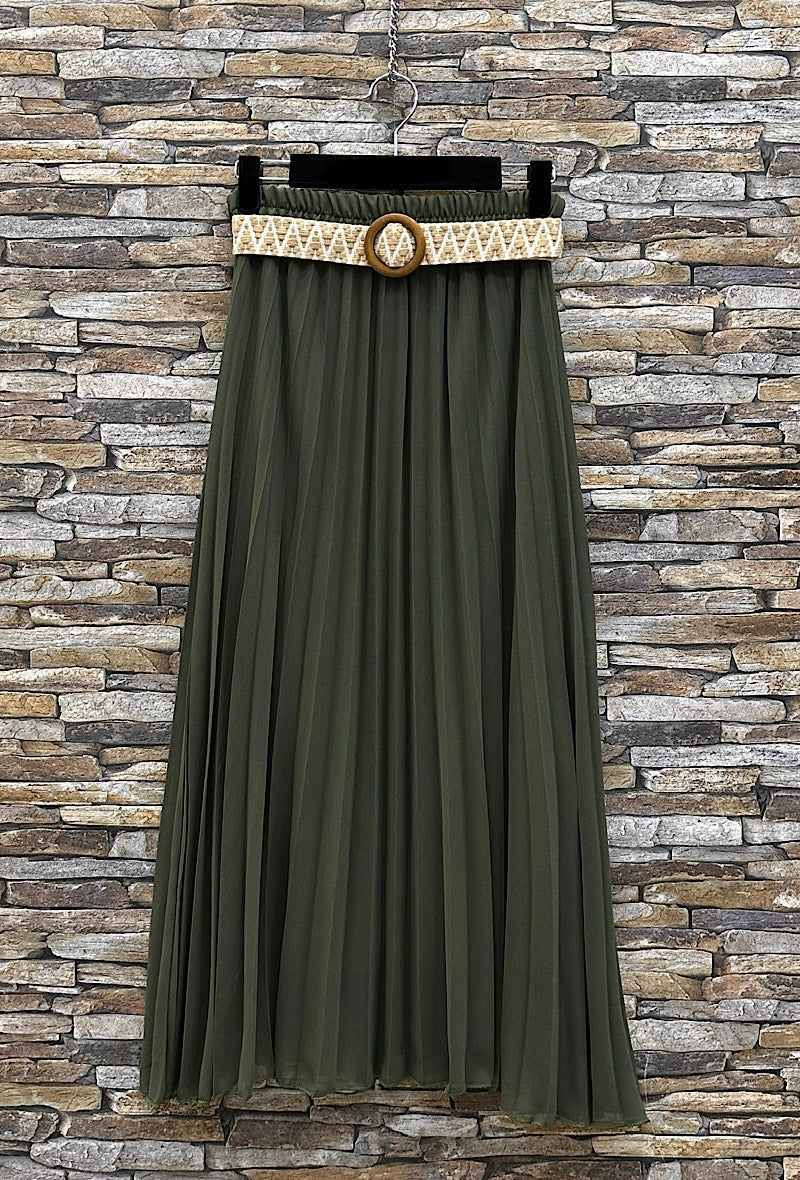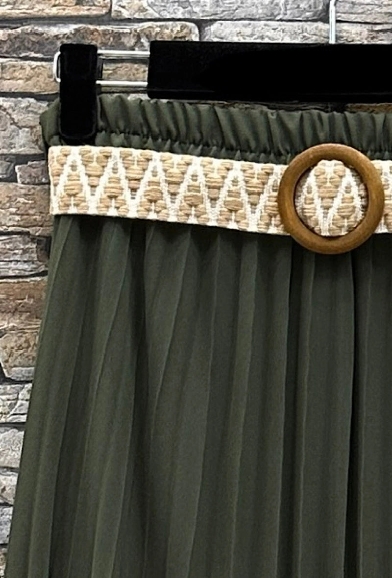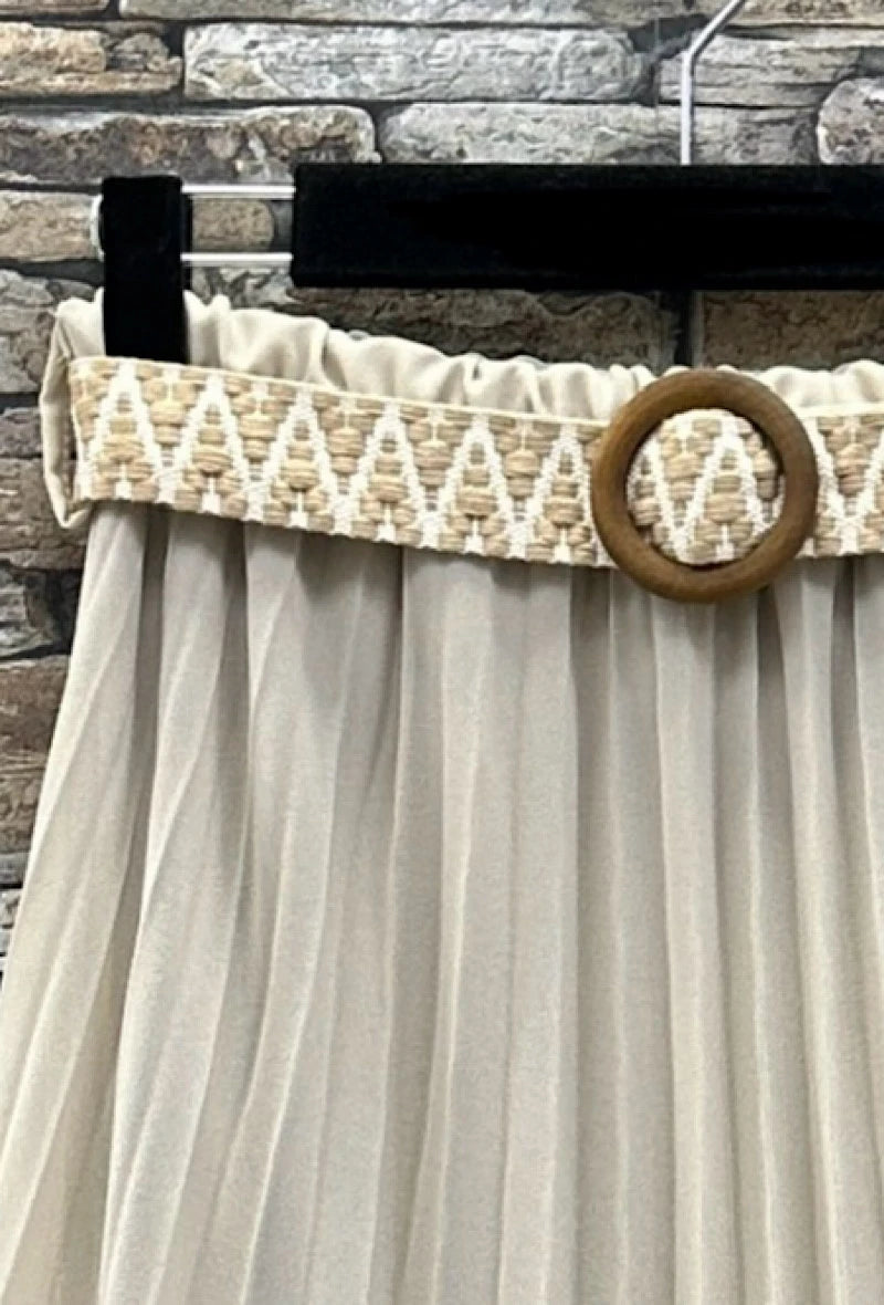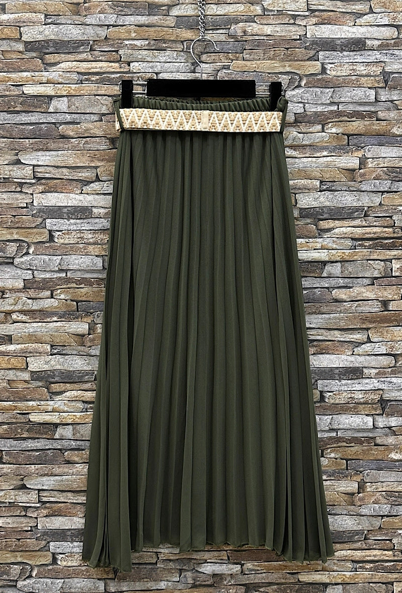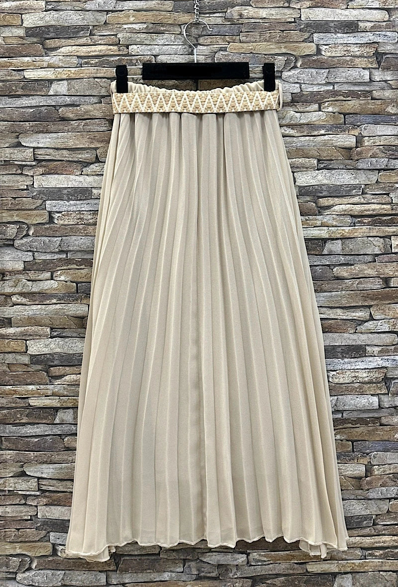 Jupe LOISSA, plissée très fluide avec doublure en viscose et ceinture bohème. TU correspond à un 38 ⁄ 40.