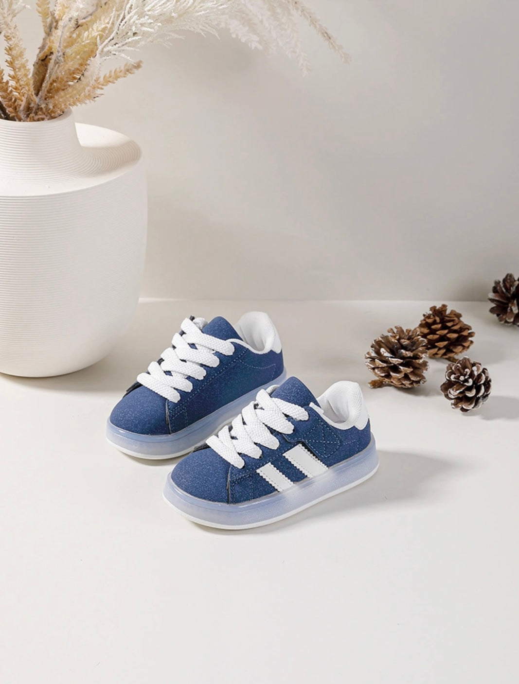 Parfait pour les enfants. Pratique et élégante, elle est équipée de lacets accrochés au scratch pour un maintien optimal. Son design classique avec deux bandes latérales ajoute une touche intemporelle. Confortable et facile à porter, elle est idéale pour toutes les occasions et même pour le quotidien. De plus, elle possède une lumière dans la semelle pour un ajout amusant.