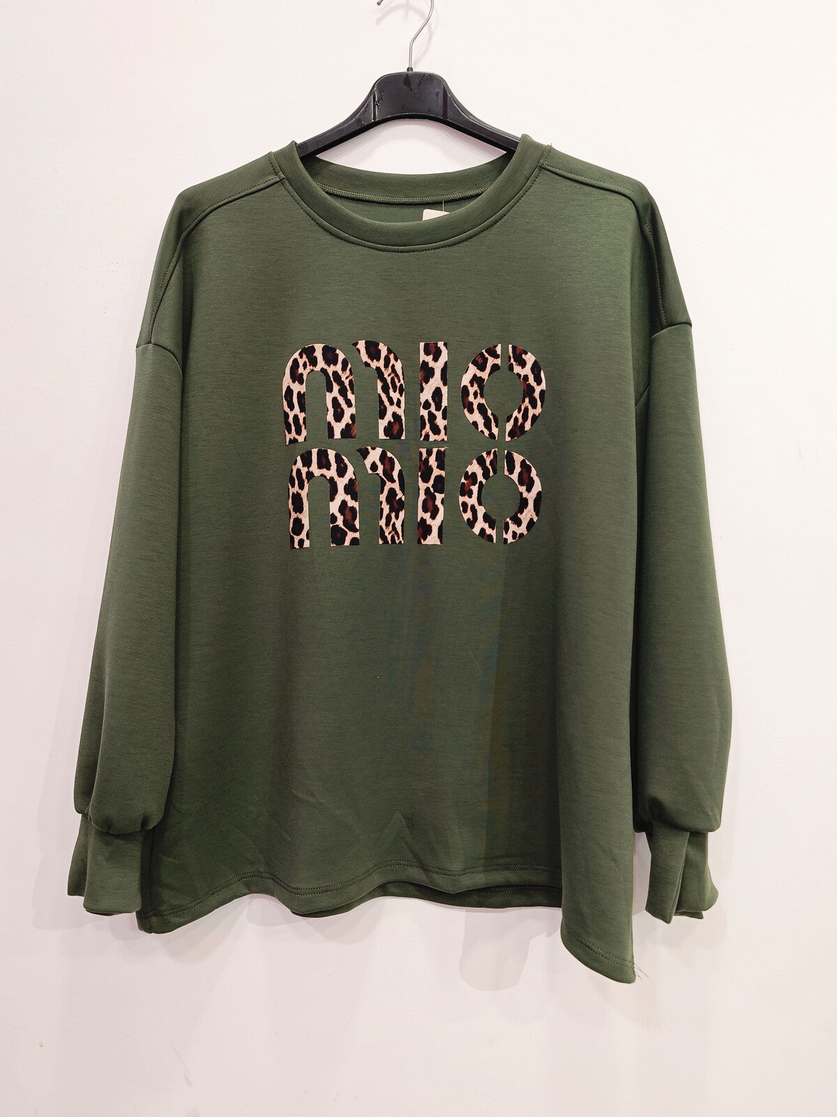sweat texte MIO en effet léopard. tissus extensibles agréable doux. taille unique 36-44+